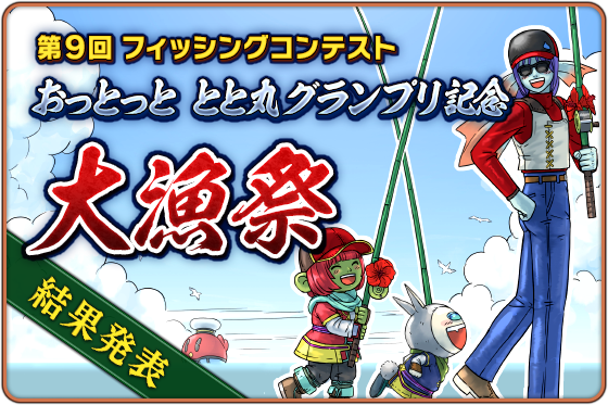第9回フィッシングコンテストの対象のおさかな「とと丸」「サクうまとと丸」を