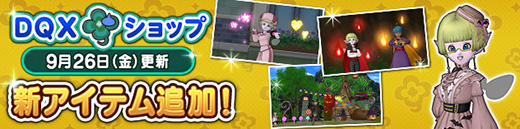 DQXショップでは、ここでしか手に入らないおしゃれアイテムや、便利な消費アイテムなどを販売中!