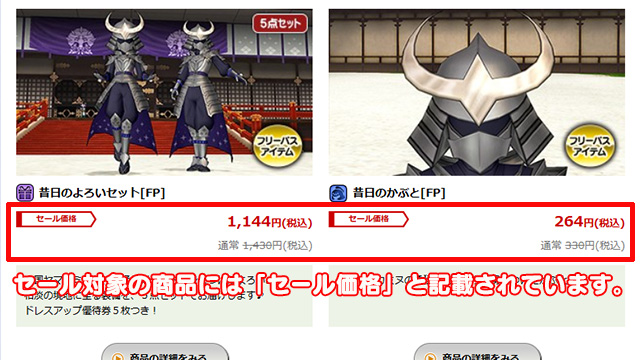 セール対象アイテムについて