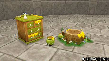| イチゴの天井飾り (家具) | 桜のラグ (庭具) | 切り株テーブル (家具) | 切り株チェア (家具) |